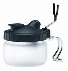 Nádobka pro čištění airbrush pistolí. Nádobka je vhodná pro odstřikování aerosolu při čištění pistole, stejně tak dobře poslouží jako stojánek pro pistoli.