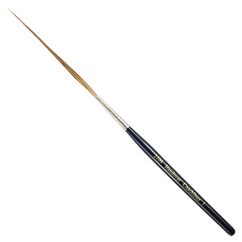 Linkovací štětce řady Coachliner. Kratší (8-9 cm) dřevěná násadka, niklované uchycení vlasu, vlas přírodní (Vůl) v délce 7 cm.