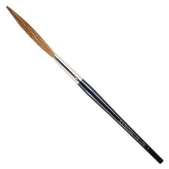 Linkovací štětce řady Coachliner. Kratší (8-9 cm) dřevěná násadka, niklované uchycení vlasu, vlas přírodní (Vůl) v délce 7 cm.