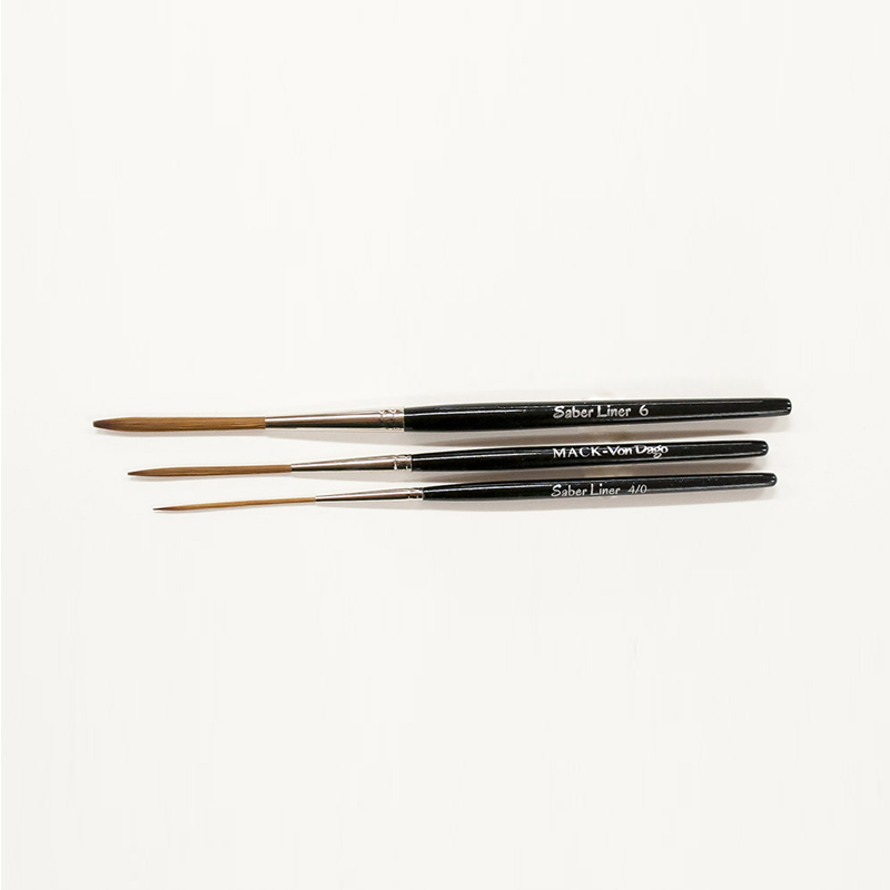 Konverzace o vytvoření tohoto štětce vhodného pro točené a klasické linky (scroller/pinstriper), byla probírána poměrně dlouho, než se konečně stala realitou. Vyzkoušeli jsme mnoho různých směsí vlasů, ať už jsou přírodní, smíšené nebo plně syntetické. Von Dago se rozhodl pro plnou syntetiku, což je náš syntetický sobol. Toto je nejnovější a nejlepší syntetický materiál na současném trhu! Je neobvyklý v tom, že nasaje barvu a kontrolovaně jí nechánstékat z vláken. Tyto vlasy nasáknou jako houba. Věděli jsme, že jsme udělali dobře, když se Von Dago, nadšenec pro přírodní vlas, zamiloval do této syntetiky. Tento štětec je nabízen ve velikostech 4/0,2/0,0,2,4,6,8,10 a 12.
