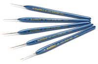 Set 5 štětců pro detail ze syntetického vlasu zlatého Sobola. Vhodné na vodou ředitelné barvy. Velikosti 00, 0, 3/0, 5/0, 10/0.